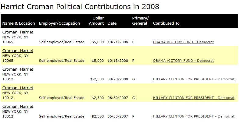 Harriet Croman's Political Campaign Contributions 2008
