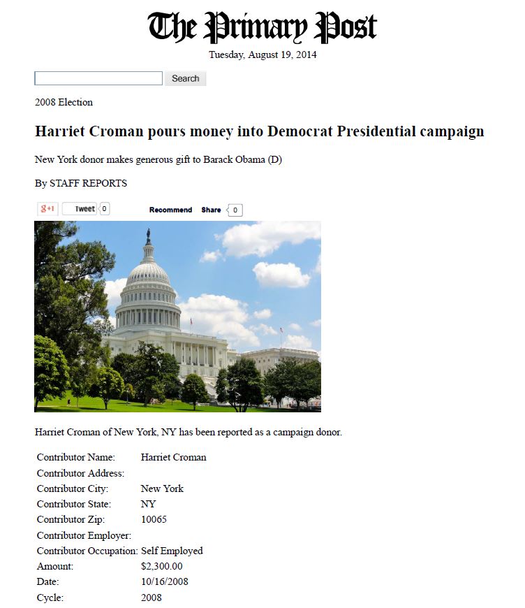 Link: https://www.campaignmoney.com/political/contributions/harriet-croman.asp?cycle=08